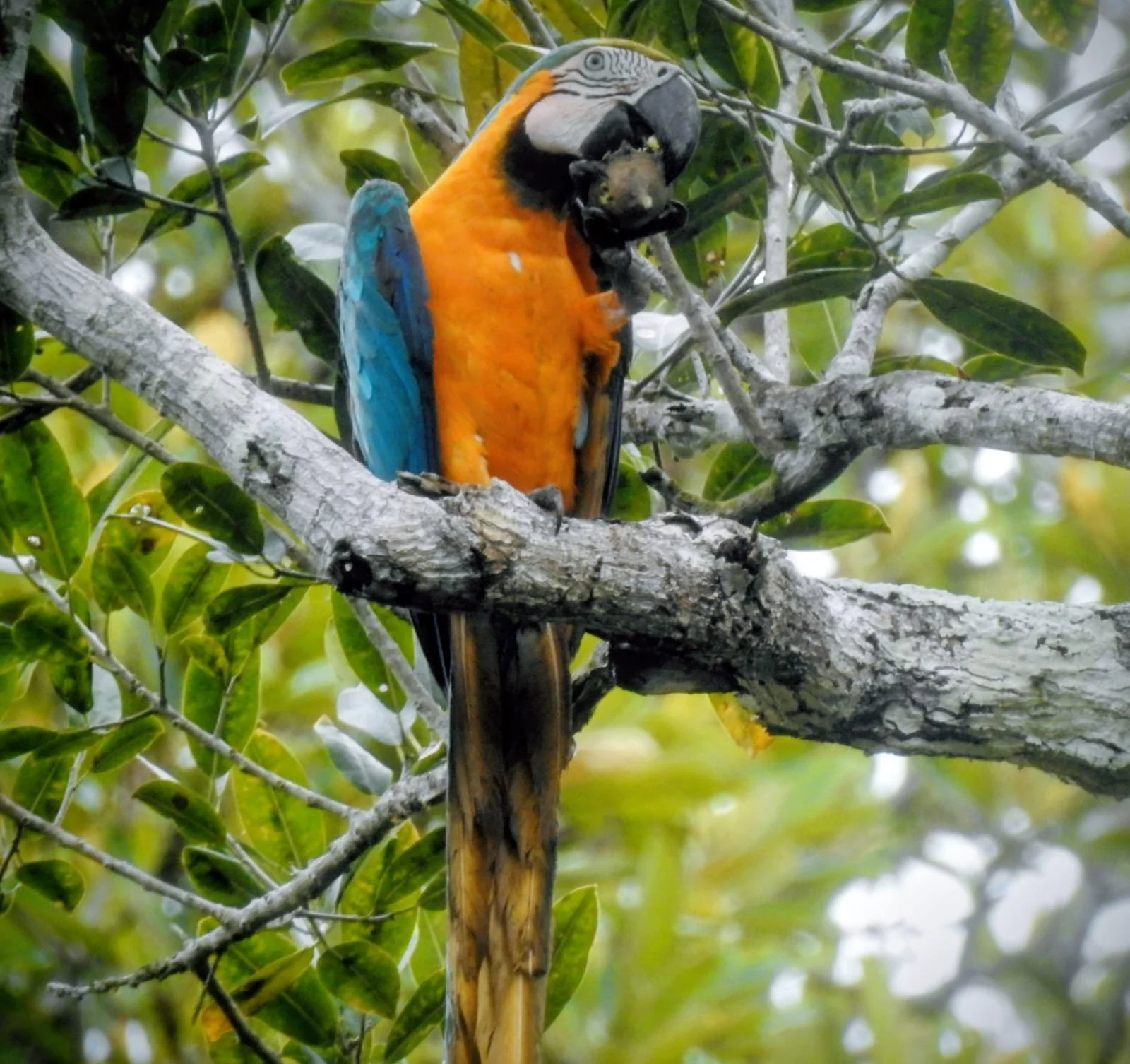 Macaws are considered omnivores, meaning they are willing to sample a variety of different foods. They are known for their ability to crack open hard shelled nuts, and they consume a variety of seeds and nuts found in their natural habitats. Fruits and berries are a significant part of their diet. As previously mentioned, the Mauritian flexuosa palms are not only crucial to the blue and gold macaws for protection and seclusion , they are also a key food source for the macaws, producing a chestnut colored , scaly fruit with yellow pulp a dan edible nut. Macaws will also consume leaves, buds and other plant matter. As well as visit clay licks (exposed riverbank) to obtain essential minerals.